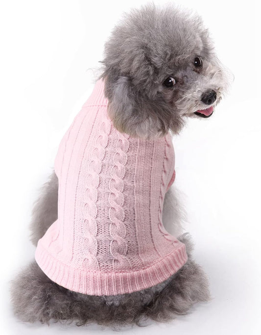 Turtleneck Dog Sweater, Classic Knitwear Dog Pullover Sweaters Warm Winter Pet Apparel Knitted Puppy Clothes for Small Dogs and Cats (Pink, Large)